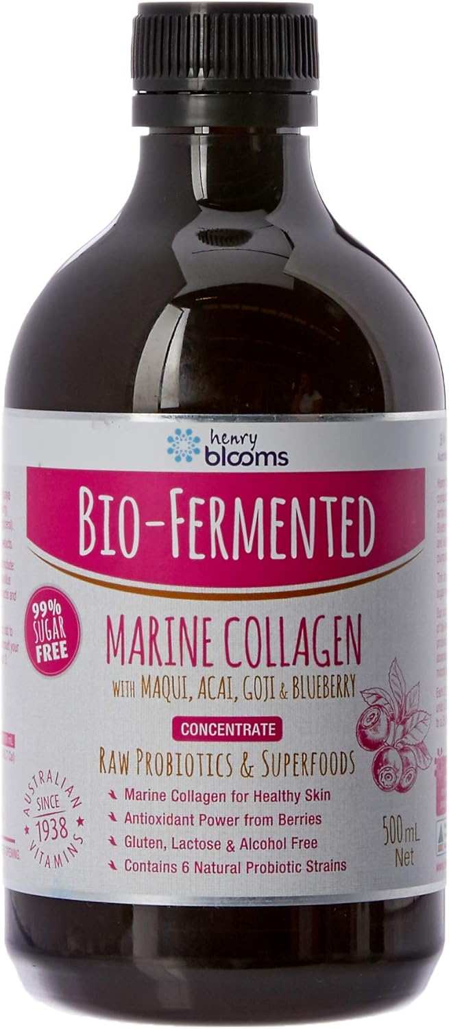 Henry Blooms Bio-Fermented Probiotic Marine Collagen with Maqui, Acai,goji and Blueberry Concentrate, 500ml