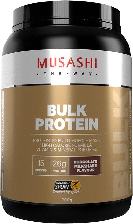 Musashi Bulk Protein Blend (70%) [Whey Protein Concentrate, Skim Milk Powder, Whole Milk Powder, Whey Protein Isolate, Emulsifiers (Soy Lecithin, Sunflower Lecithin)], Maltodextrin, Dextrose, Vitamins & Minerals (Di-calcium Phosphate, Dipotassium Phosphate, Magnesium Carbonate, Zinc Gluconate, Ferric Pyrophosphate, Maltodextrin, Sodium Ascorbate, Vitamin E Acetate, Nicotinamide, Vitamin A Acetate, Vitamin D3, Vitamin B12, Potassium Iodide, Vitamin B6, Vitamin B2, Vitamin B1, Folic Acid), Flavours, Vegetable Gum (Guar Gum), Sweetener (Sucralose), Acidity Regulator (Citric Acid). Allergen Contains: Milk| Soy