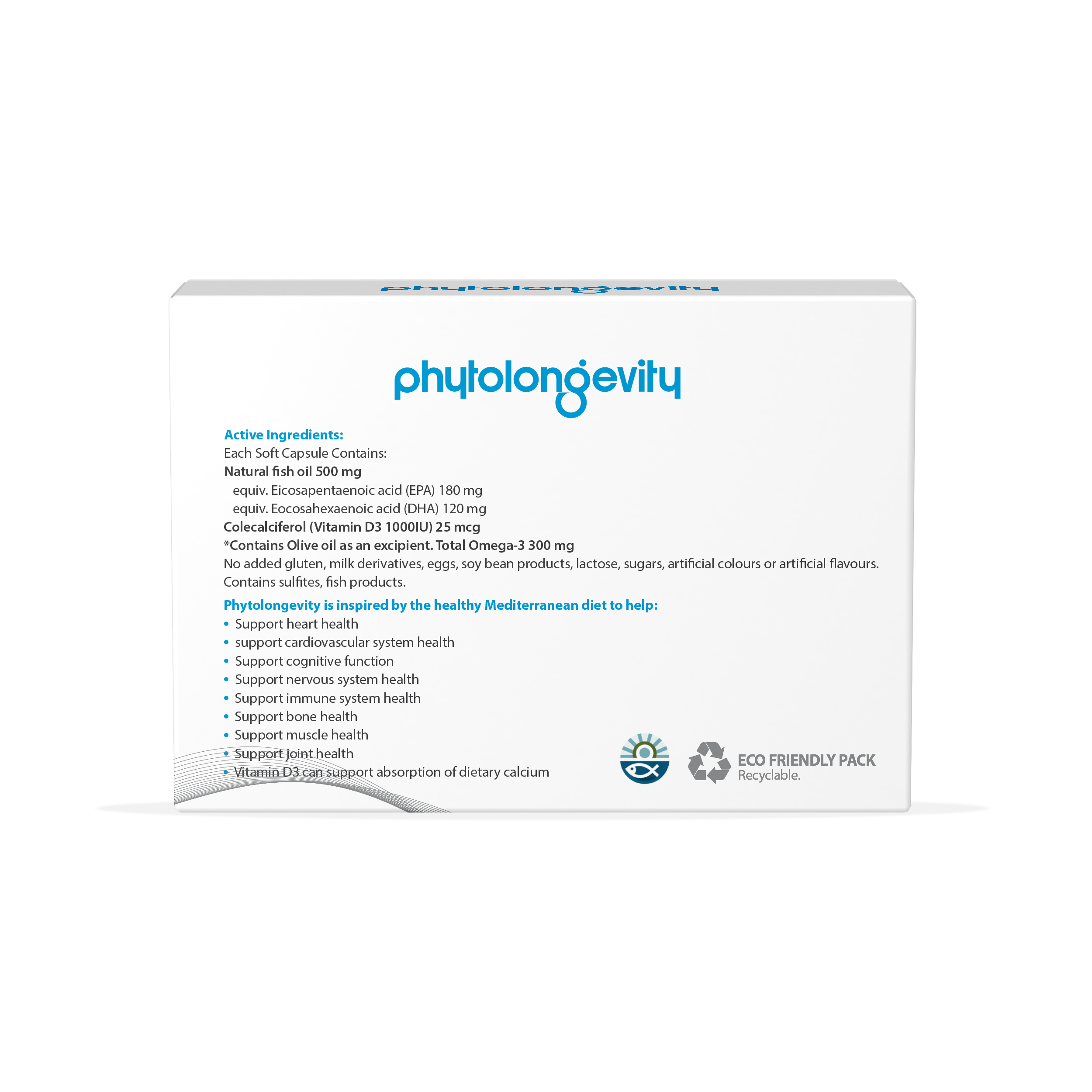 Phtyolongevity is inspired by the healthy Mediterranean diet and lifestyle[1-3], which loves seafood, sunshine, and olive oil. It blends natural fish oil, high in omega-3 fatty acids for your nervous system and heart health, fortified with Vitamin D3 for healthy muscle and bone.It’s designed to support your general health and wellbeing, just like the Mediterranean lifestyle.