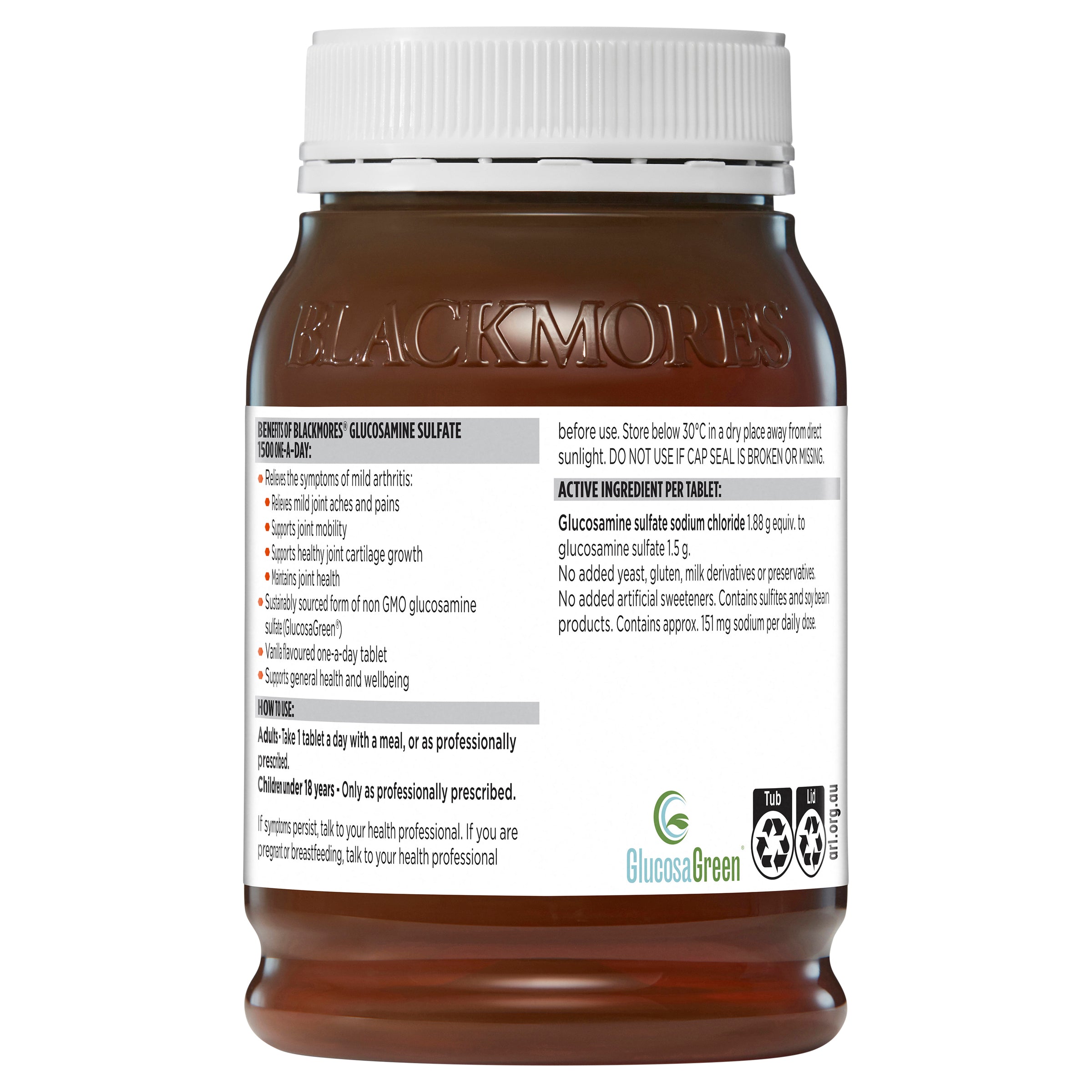 • Sustainable sourced form of non GMO form of glucosamine sulfate (GlucosaGreen®)