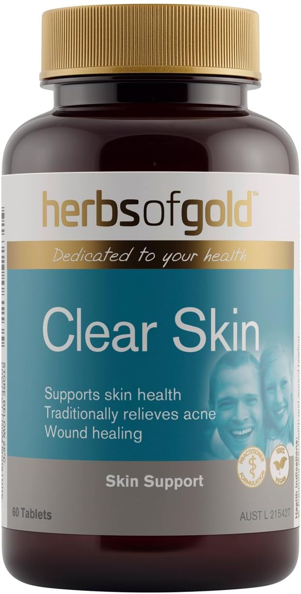 Herbs of Gold Clear Skin combines herbs traditionally used for the management of minor skin disorders with nutrients vitamins A, B6 and zinc for the maintenance of healthy skin. It helps to the relief of mild acne, skin repair and healing. Clear Skin contains Burdock, Yellow dock and Echinacea, herbs traditionally used for the symptomatic relief of mild eczema, mild psoriasis, mild acne and for the management of minor skin conditions.