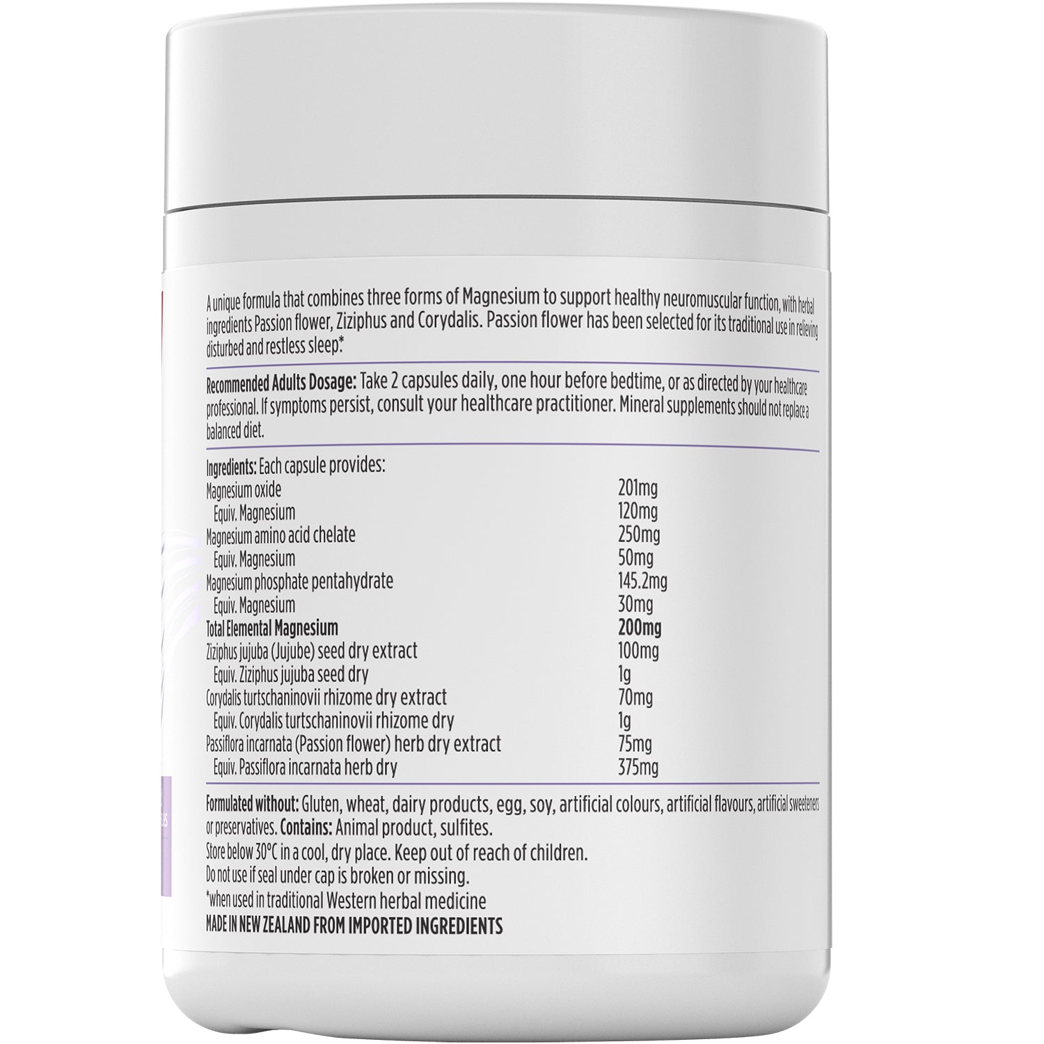 Nutra-Life Magnesium Sleep contains a combination of three sources of Magnesium which play a role in proper muscle function, supports nervous system health and helps prevent dietary magnesium deficiency. This formula also includes the herbal ingredients Passion flower, Ziziphus and Corydalis. Passion flower is traditionally used in Western herbal medicine as a calmative to relieve excess nervous energy and in promoting and supporting sleep.